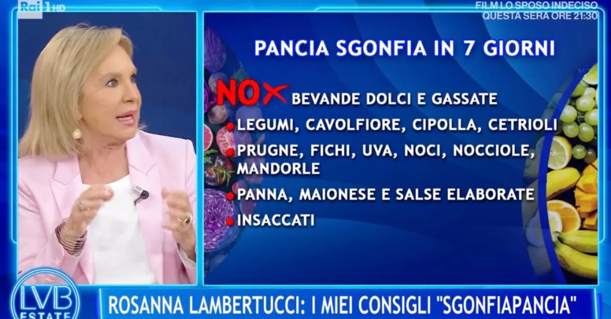 Pancia sgonfia in 7 giorni, quali alimenti mangiare e quali evitare con i consigli di Rosanna Lambertucci