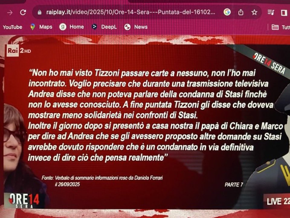 Nelle varie trasmissioni televisive in onda ieri sono state mostrate quelle che sarebbero le dichiarazioni fatte dalla madre di Andrea Sempio.