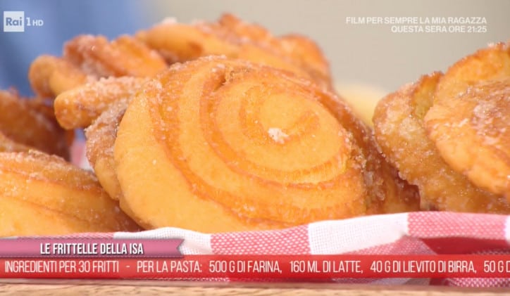 La ricetta delle frittelle della Isa, le frittelle dolci di Carnevale di zia Cri dalle nuove ricette E’ sempre mezzogiorno di oggi 16 febbraio 2021. Tutti sono vestiti per il Carnevale nella cucina di E’ sempre mezzogiorno e Antonella Clerici è la più felice di tutti, con il suo vestito può mangiare di tutto, tanto poi se si gonfia non si vede. Bravissima come sempre zia Cri che vestita da Colombina non ha problemi nel preparare le sue frittelle di Carnevale. Sono le frittelle che altri chiamano chiacchiere o limoncine, sono i dolci di Carnevale fritti e farciti con lo zucchero semolato e la scorza di limone grattugiata. Volendo possiamo aggiungere alle frittelle di E’ sempre mezzogiorno anche la scorza di arancia grattugiata. Una vera delizia per il martedì grasso, quindi non ci resta che seguire la ricetta di oggi di zia Cri, la ricetta delle frittelle di Isa per carnevale.