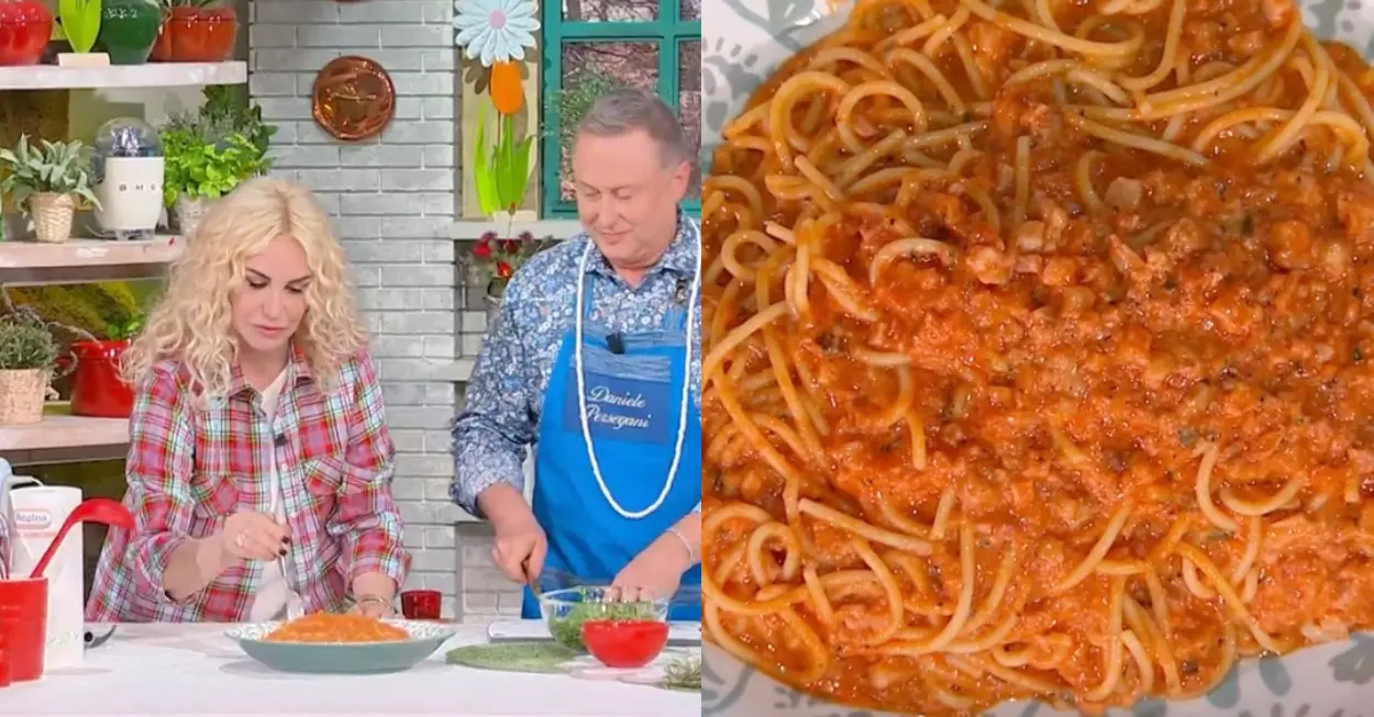 Cuociamo gli spaghetti in acqua bollente e salata. Scoliamo e versiamo in padella con tutto il condimento e facciamo saltare. Serviamo la pasta millegusti completando con la rucola che davvero non serve e a niente ma i ricordi sono importanti per Daniele Persegani e non solo per lui. Senza dubbio questa è una pasta che ricorda a Daniele Persegani, Antonella Clerici e gli altri i tempi in cui non erano bravissimi in cucina, erano giovani e mettevano in questo primo piatto un po’ tutto quello che avevano. La conduttrice non ci pensa un attimo e assaggia il piatto che fatto con la ricetta di oggi del prof merita davvero di essere replicato.