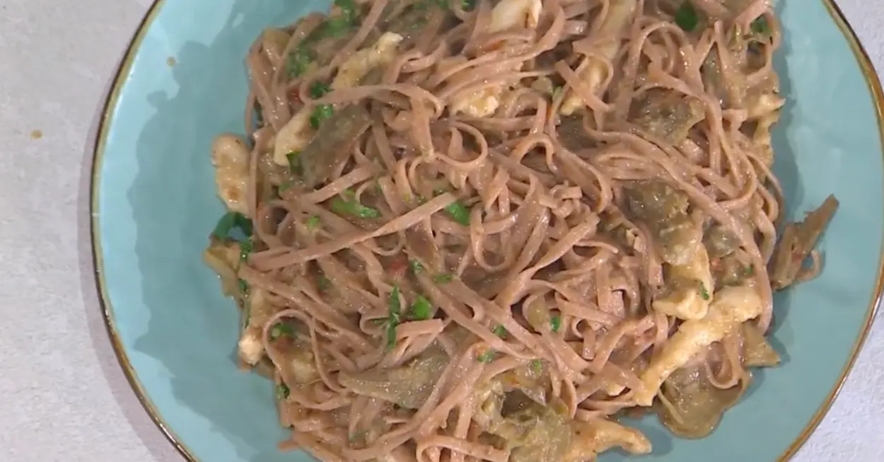Fabio Potenzano con la ricetta delle tagliatelle integrali con pollo e carciofi per E' sempre mezzogiorno oggi 11 marzo 2026