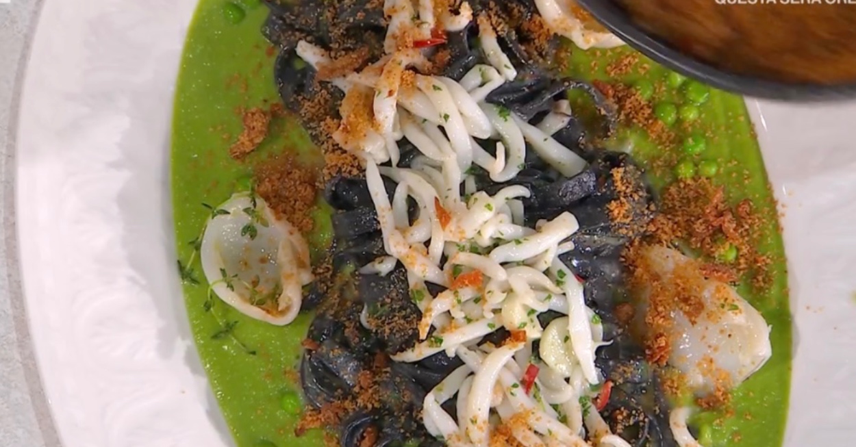 Fettuccine di primavera di Gian Piero Fava con seppie e piselli, la ricetta E' sempre mezzogiorno di oggi 16 marzo 2026