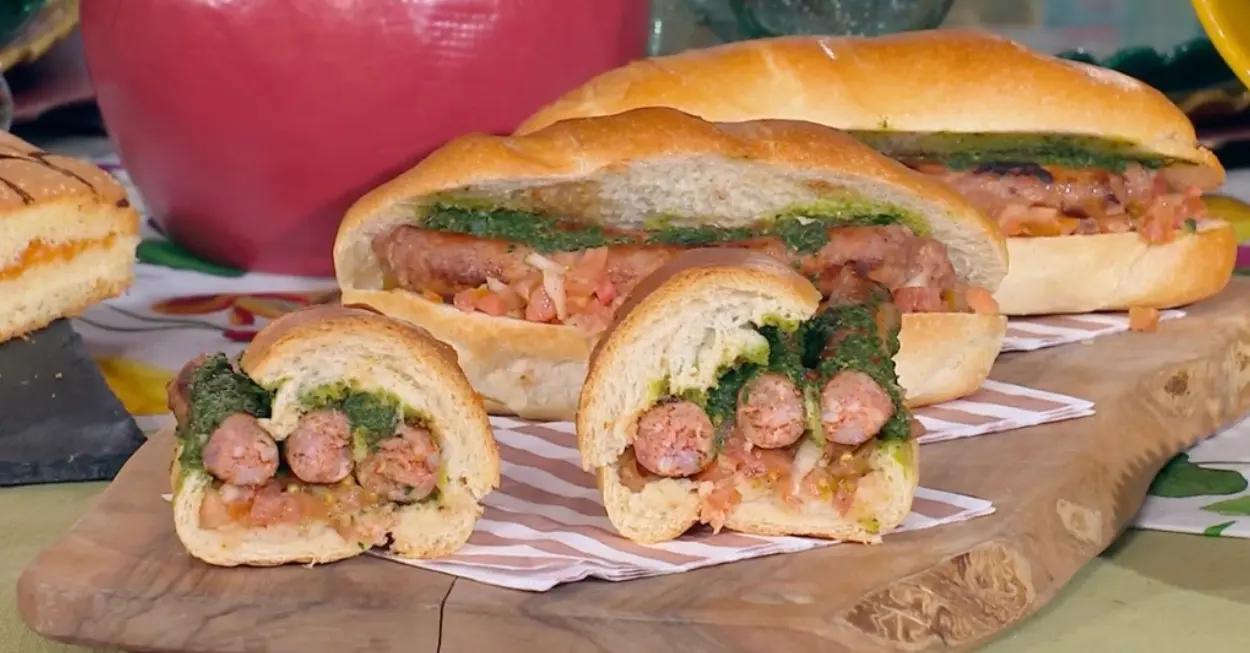 Choripan è la ricetta di Fulvio Marino del 12 marzo 2025 e si va in Argentina per questo panino con la salsiccia piccante, con la salsa di pomodoro e la salsa di prezzemolo.