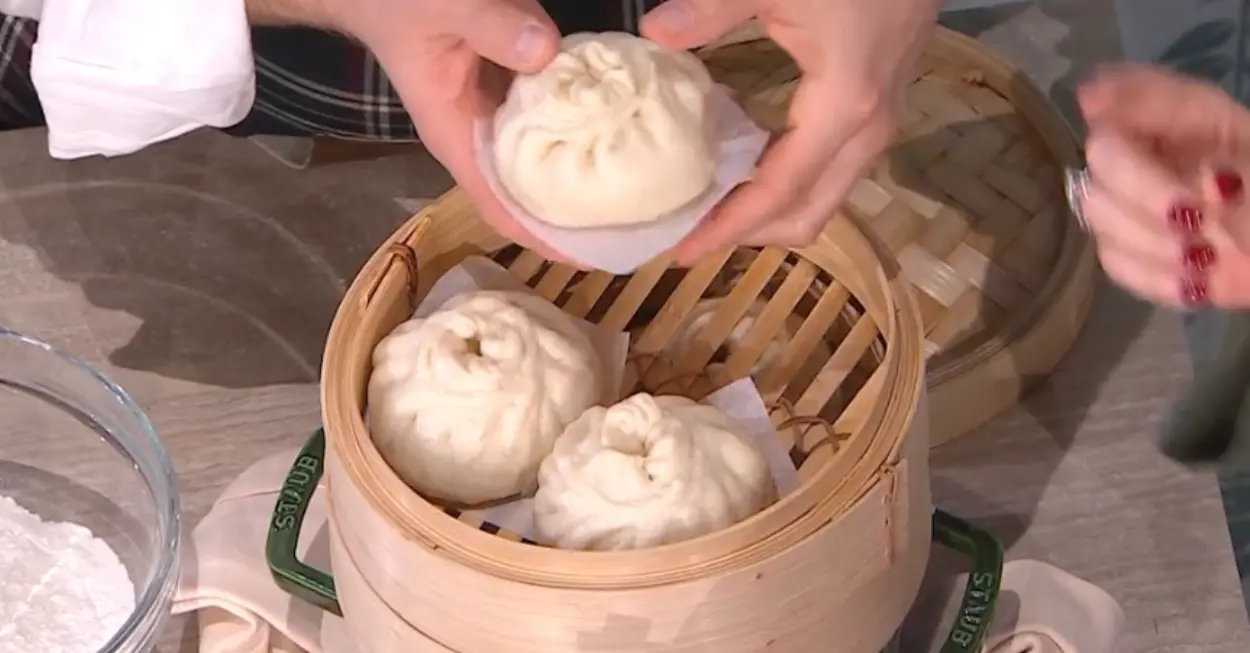 Fulvio Marino oggi 3 marzo 2026 a E' sempre mezzogiorno ci regala la ricetta dei baozi, i panini cinesi che sembra ravioli ripieni, preparati con Fabrizio Nonis