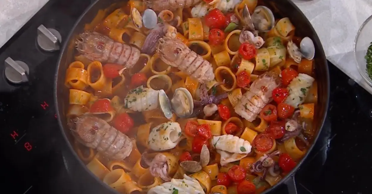 Gran calamarata ai frutti di mare è la ricetta di David Fiordigiglio di oggi 8 aprile 2026 per E' sempre mezzogiorno