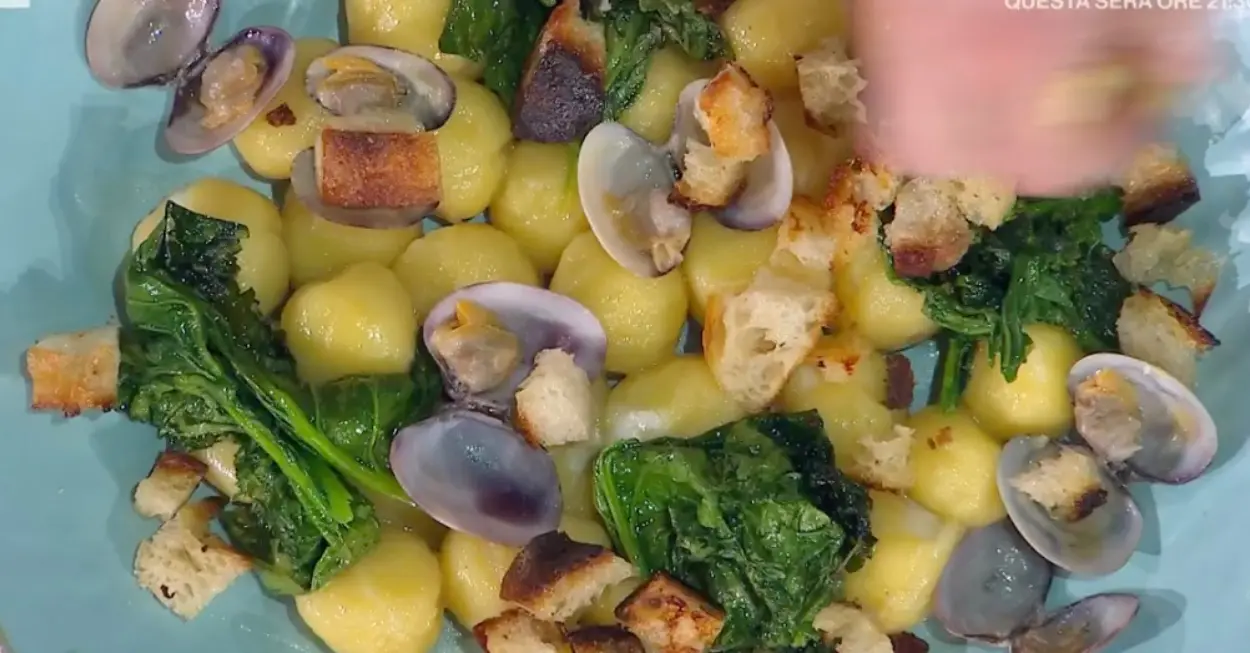 Mattia Improta è davvero bravo e il risultato di questi gnocchi ripieni con sughetto alle vongole, pane tostato e friarielli è in realtà un pranzo completo, ecco la ricetta. Qui la ricetta di oggi dei biscotti di Zia Cri