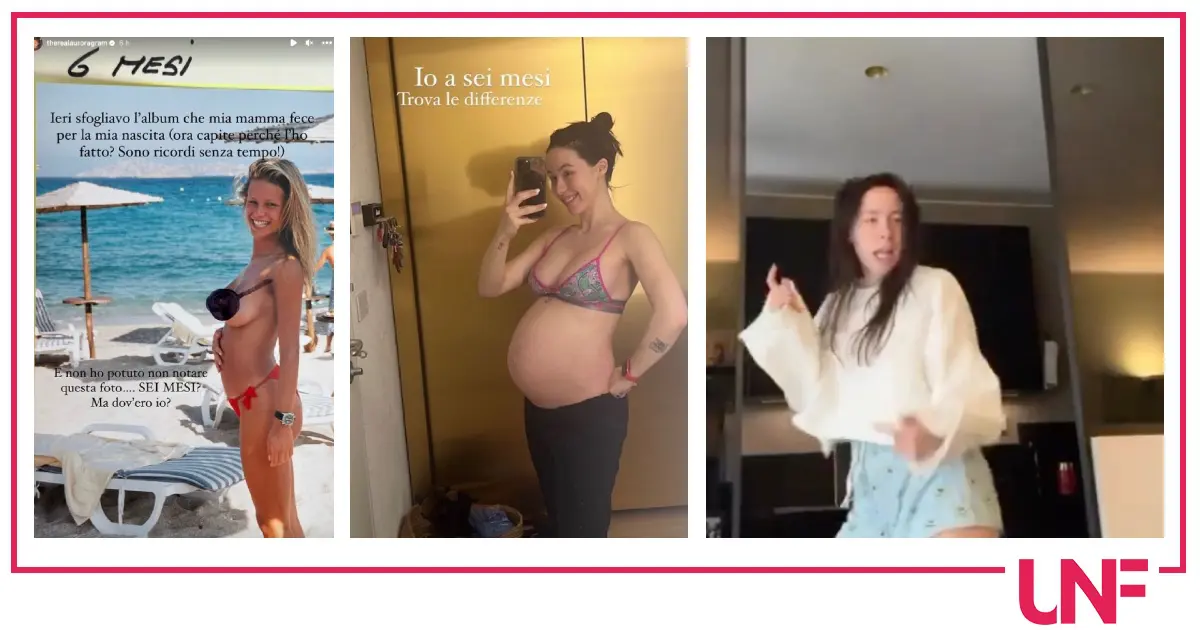 “Io a sei mesi, trova le differenze” e la differenza è ovvia. Più volte durante la gravidanza Aurora Ramazzotti ha ripetuto che ogni gravidanza è diversa, ogni parto e post parto sono diversi da donna a donna. A lei avevano detto che sarebbe stato tutto meraviglioso e idilliaco dal primo mese ma non è stato così, ha avuto bisogno di tempo e solo quando è nato suo figlio ha vissuto l’emozione speciale che magari altre mamme vivono subito, appena sanno che sono in dolce attesa. Anche il parto per Aury è stato complicato, ne ha parlato dicendo poche cose. Quando è tornata a casa dalla clinica ha avuto bisogno di altro tempo, di trovare con Goffredo e il piccolo Cesare Augusto i loro tempi, senza fretta. Ogni gravidanza è diversa e ogni pancione è diverso.