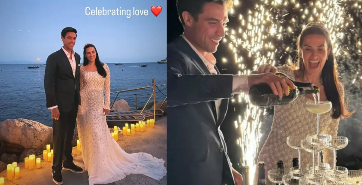 La cerimonia si è svolta nel weekend, con un’atmosfera romantica e sofisticata: Gabriele, 31 anni, ha indossato un elegante completo blu, mentre la bellissima Carla ha incantato tutti con un abito bianco in chiffon e raso, etereo e raffinato, perfettamente in sintonia con lo scenario mozzafiato del Mediterraneo.