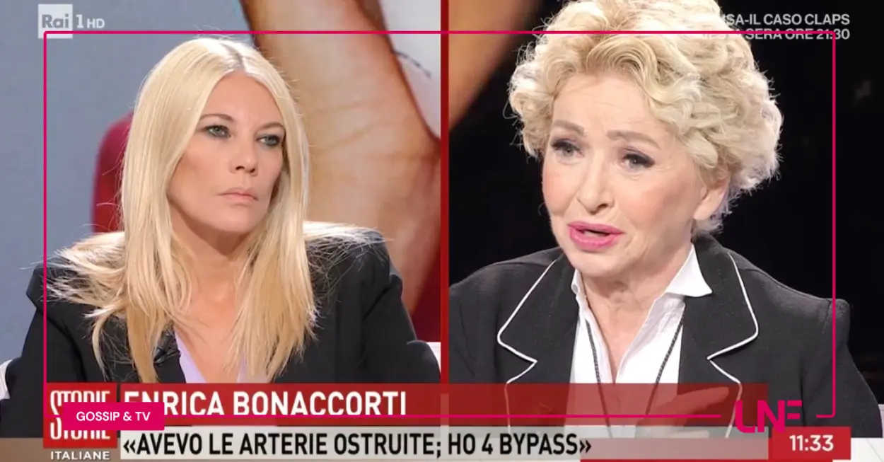 “Sono bella perché sono viva e già questa è una luce. Voglio recuperare lo slancio vitale, la vitalità, sempre di più” è così che Enrica Bonaccorti risponde a Eleonora Daniele che le dice che è ancora più bella. E’ sofferente, piano piano starà sempre meglio ma è a Storie Italiane anche per dare un esempio a chi si trascura, non è attento alla propria salute. Enrica Bonaccorti è stata superficiale, lo ammette, si è sempre accontentata di un elettrocardiogramma e numeri che non controllava, perché nessuno le diceva niente.